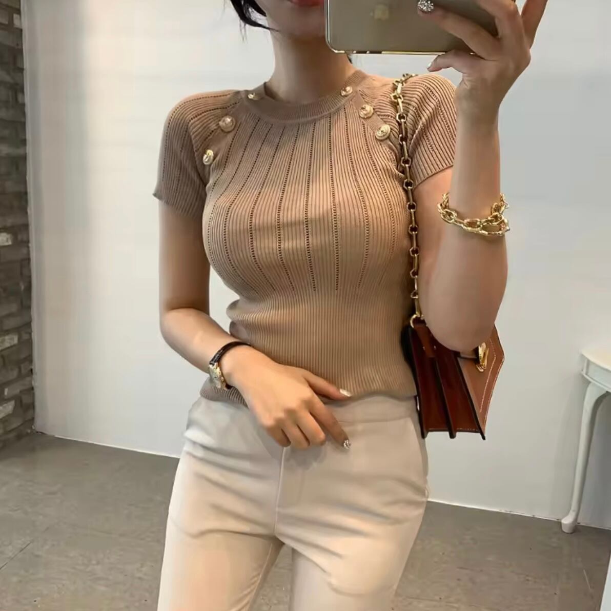 伸びの良いリブ編みがボディラインにやさしくフィットし、