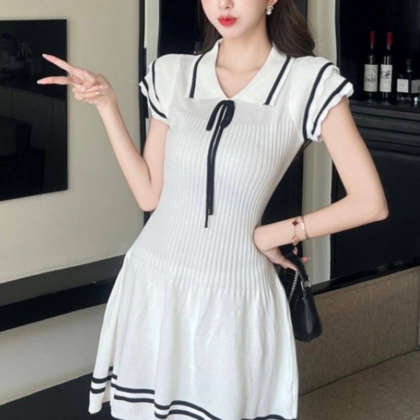 ミディアム丈リブニットワンピース