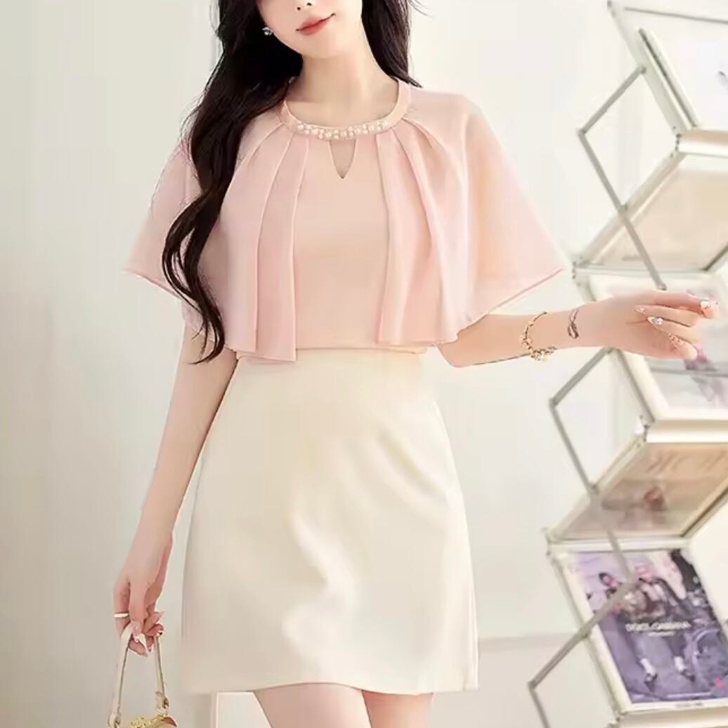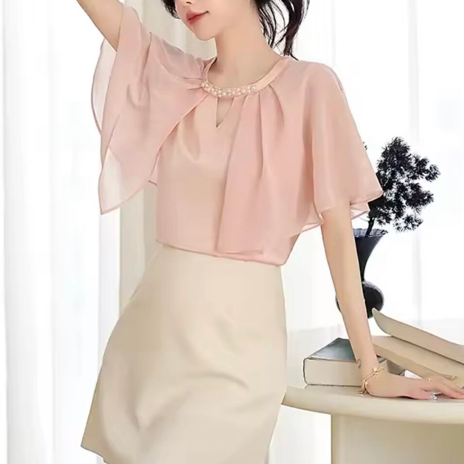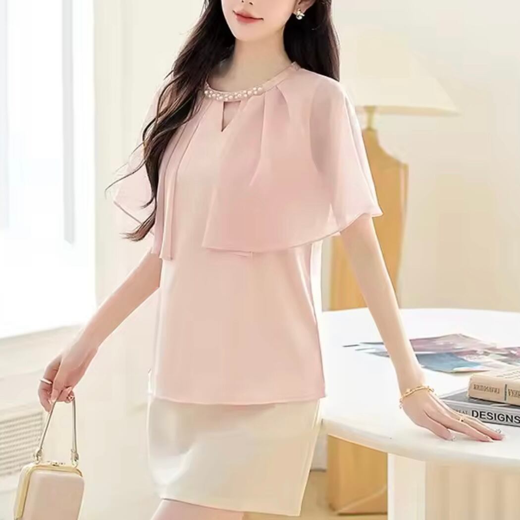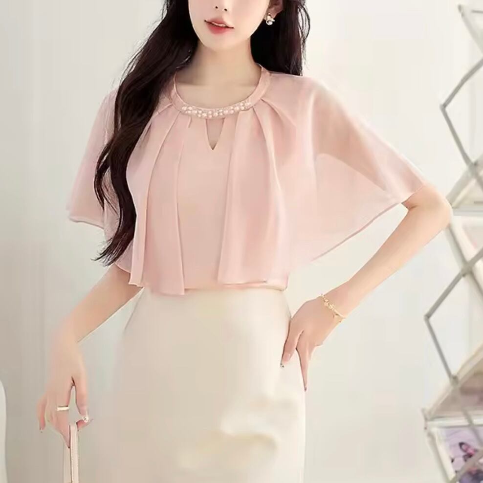 パールネックシフォンブラウス