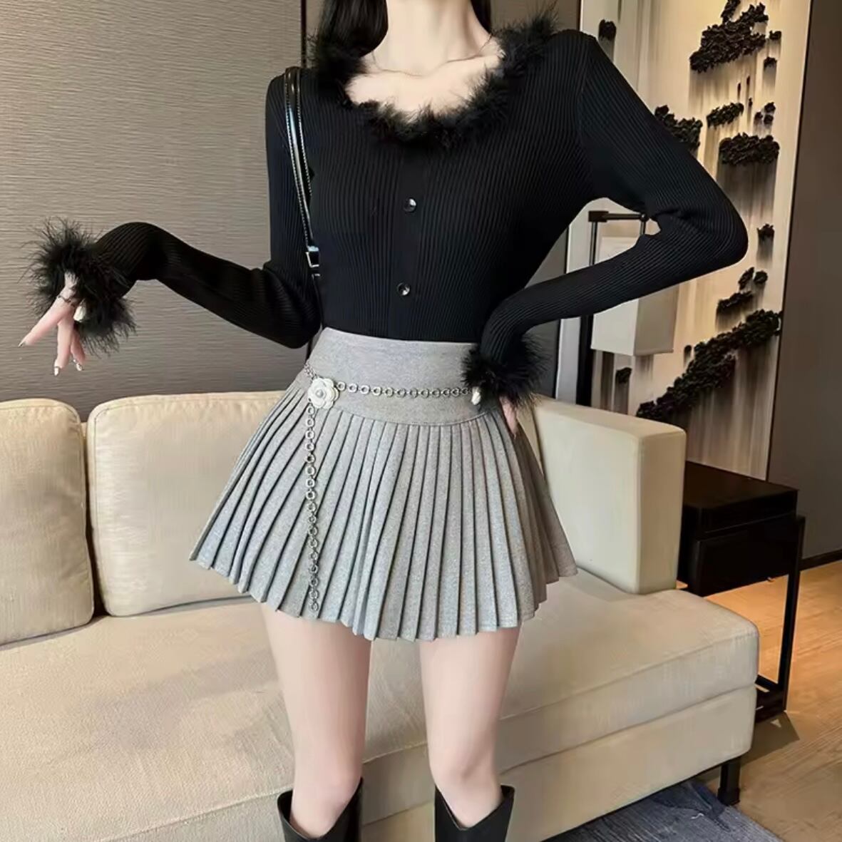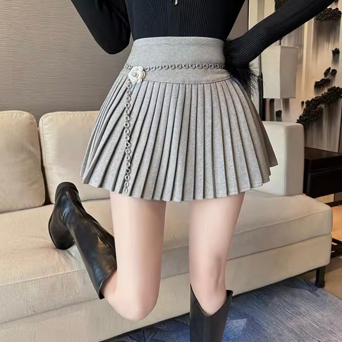 チェーンプリーツミニスカート