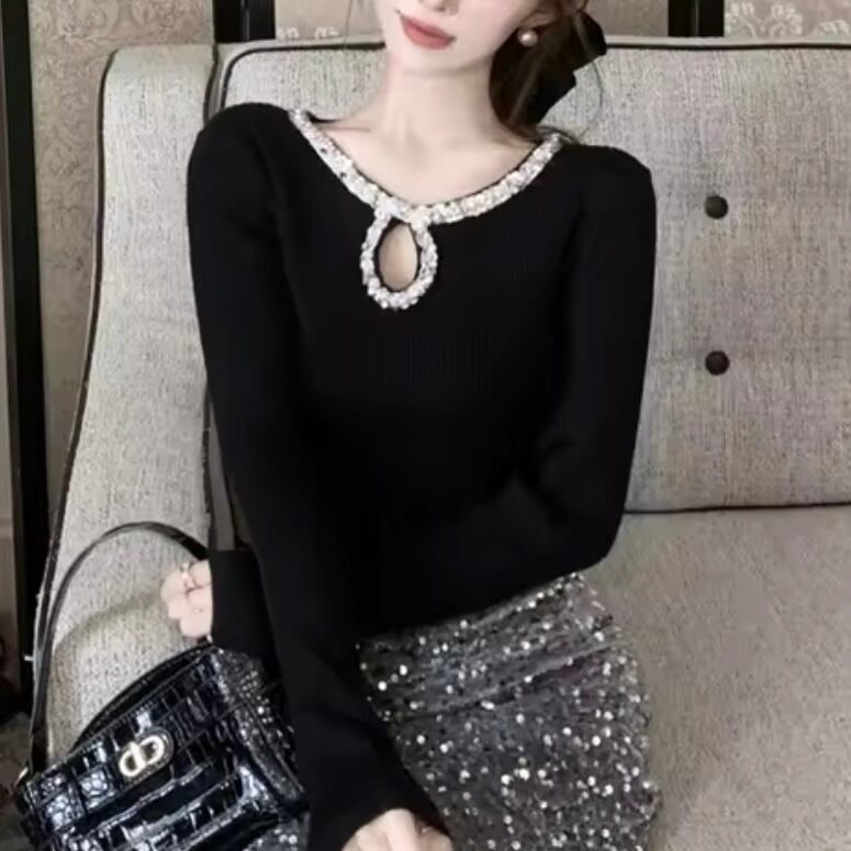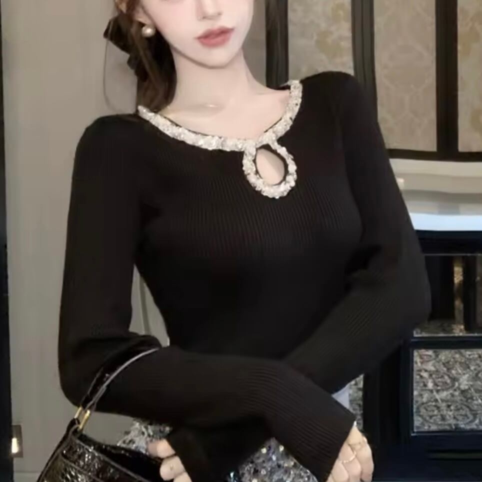 エレガントラウンドネックビジューニット