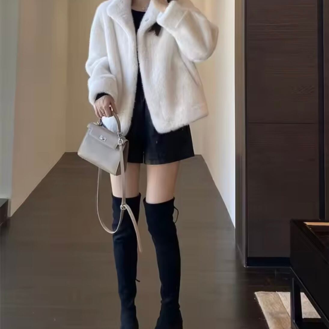 今っぽトレンド:ショートボトムスにロングブーツを合わせたトレンドライクな着こなしにもぴったりハマります☆