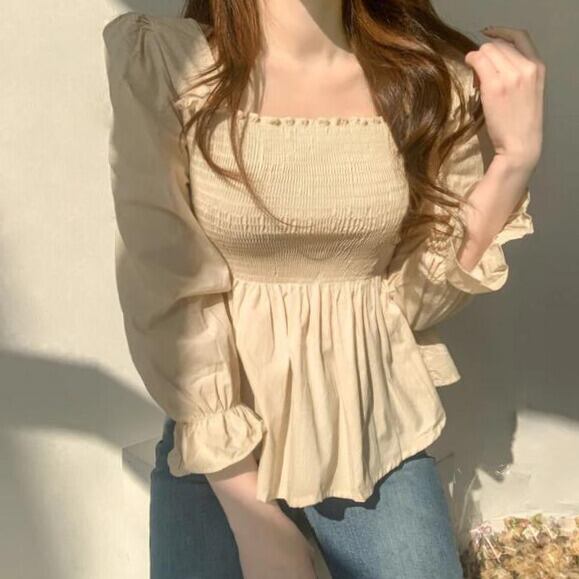 スクエアネックブラウス[White]