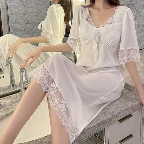 サテンネグリジェロングシャツ[Black,Pink,White]