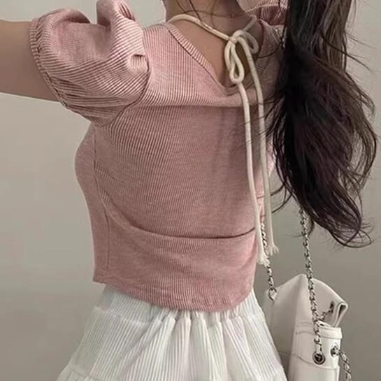 フリルホルタースウィートシャツ[Pink,White]