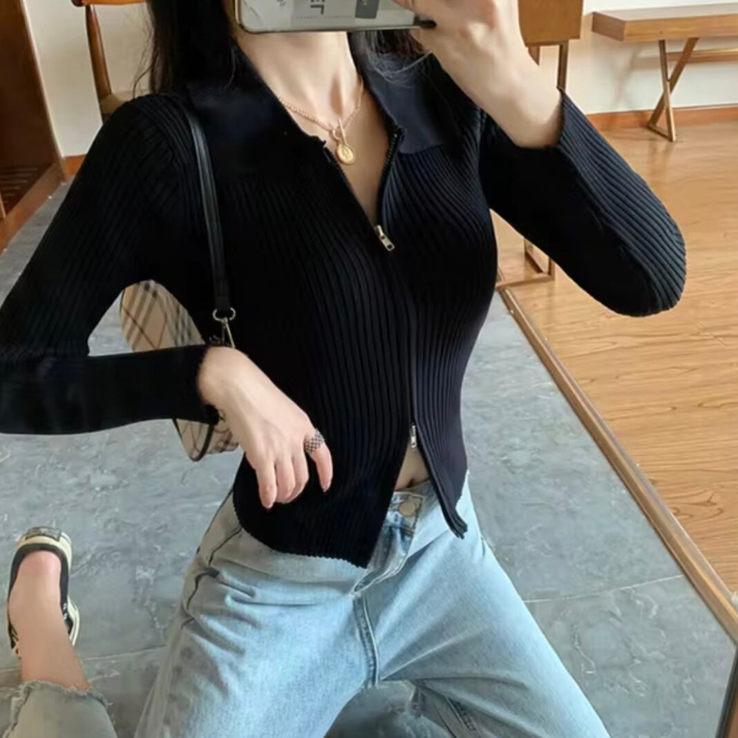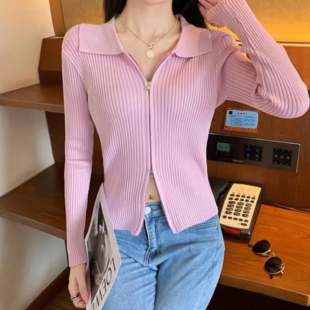 ジッパー仕様のカーディガンデザインで、便利さとトレンディなスタイルを両立。簡単に調節できる使い勝手の良さがポイントです。